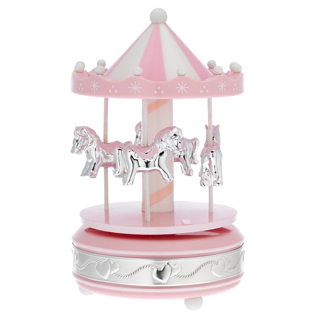 GIOSTRA IN MATERIALE ACRILICO CON CAVALLI ROSA E FASCIA ARGENTO
