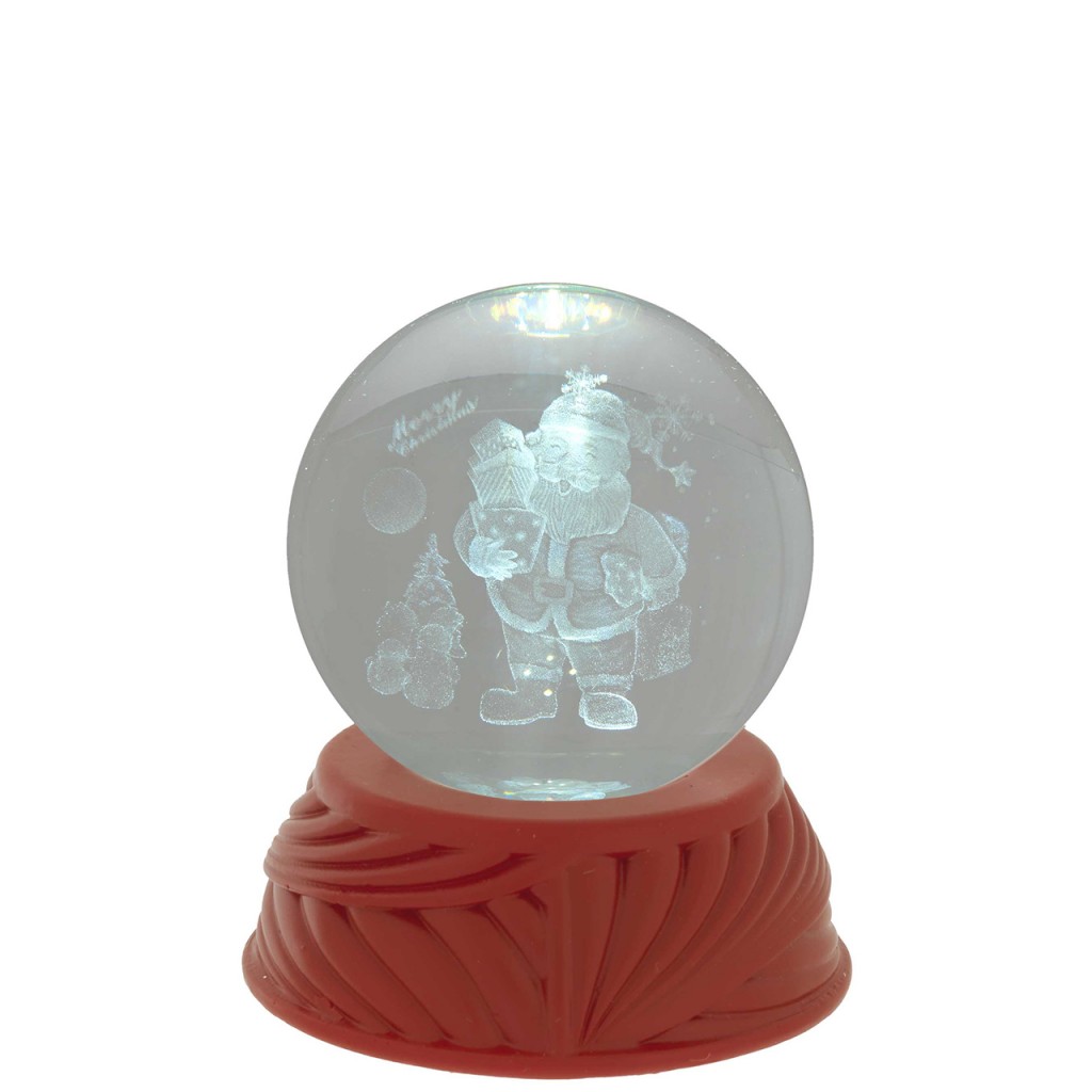SFERA IN CRISTALLO D. 6 SU BASE ROSSA CON LED - BABBO NATALE