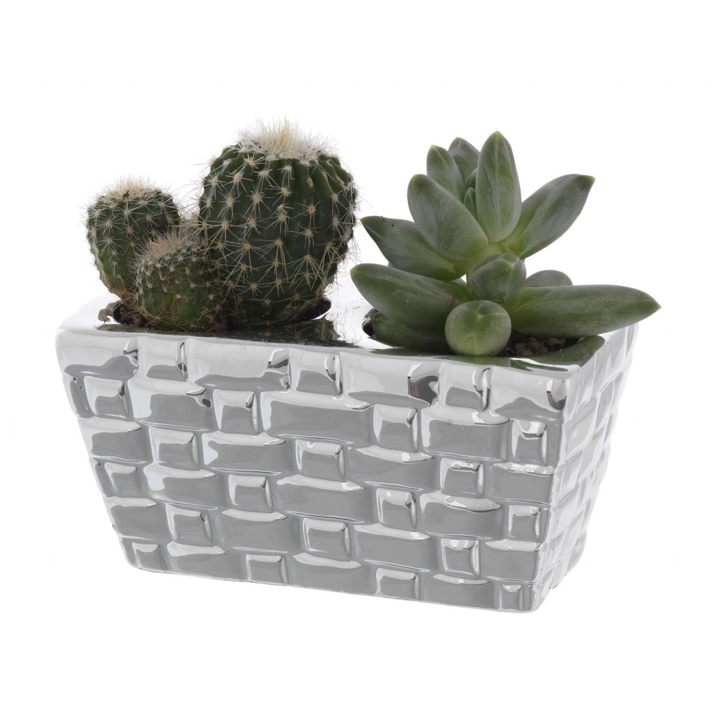 PORTAVASO QUADRO DOPPIO CM. 5x10x5 MATTONCINI CON PIANTINE GRASSE ASSORTITE