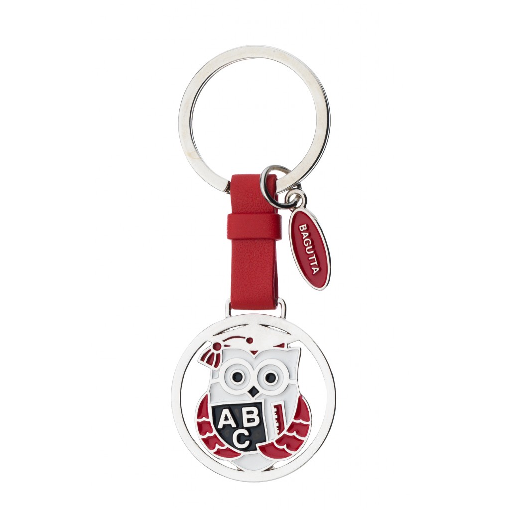 PORTACHIAVI PENDENTE CON FASCETTA ROSSA E GUFO LAUREA cm 9