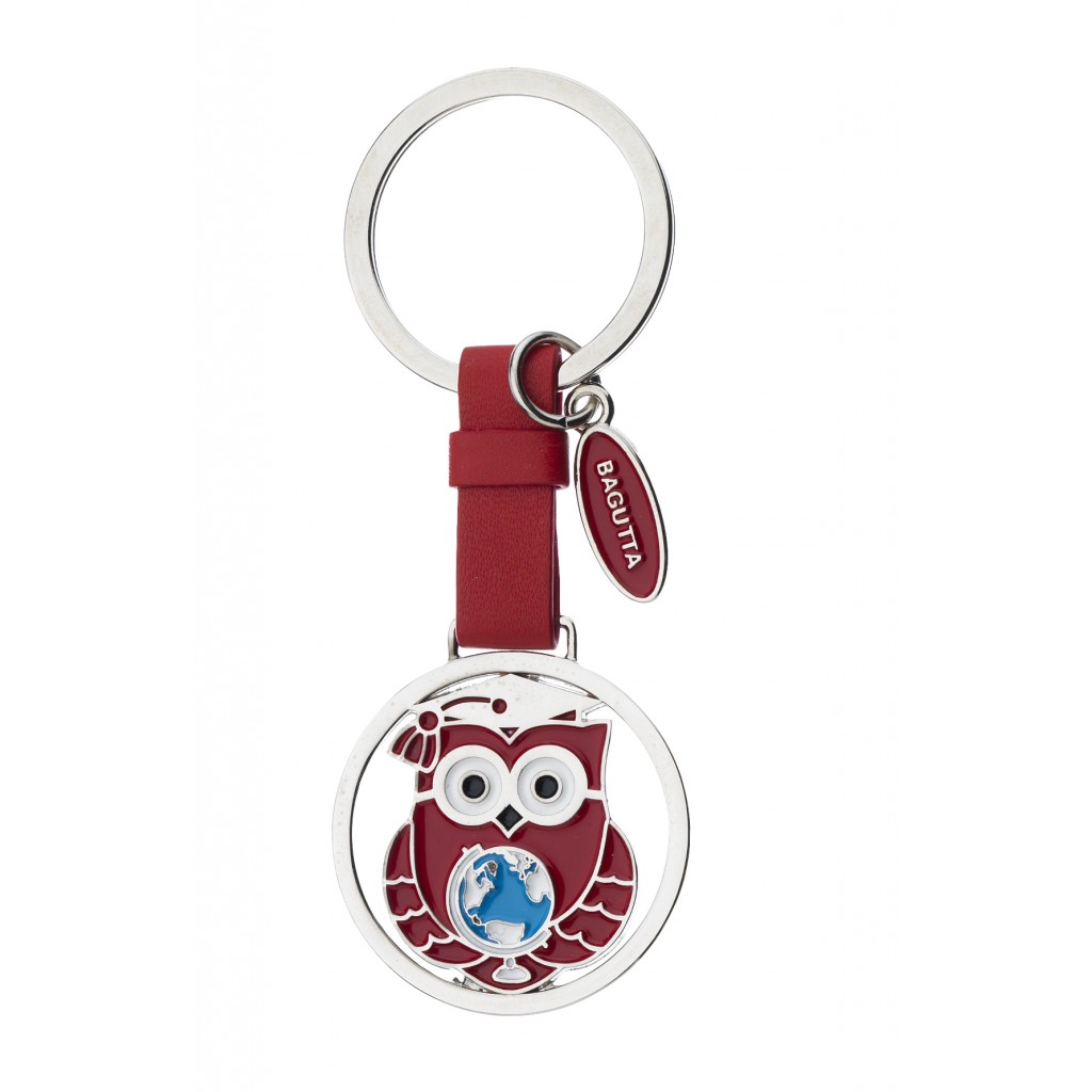 PORTACHIAVI PENDENTE CON FASCETTA ROSSA E GUFO LAUREA cm 9