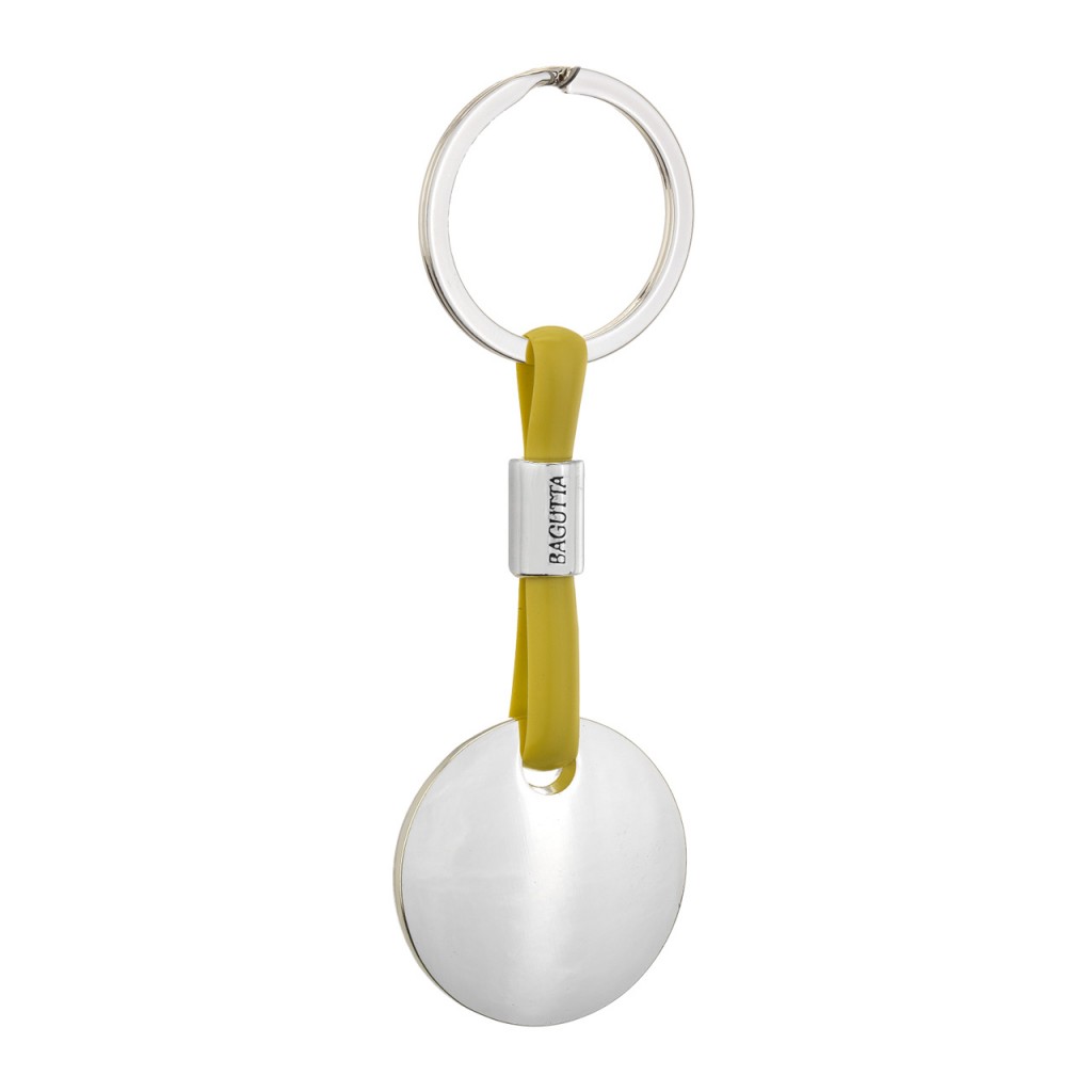 PORTACHIAVI SILVER PLATED CON CORDONE IN SILICONE SENAPE