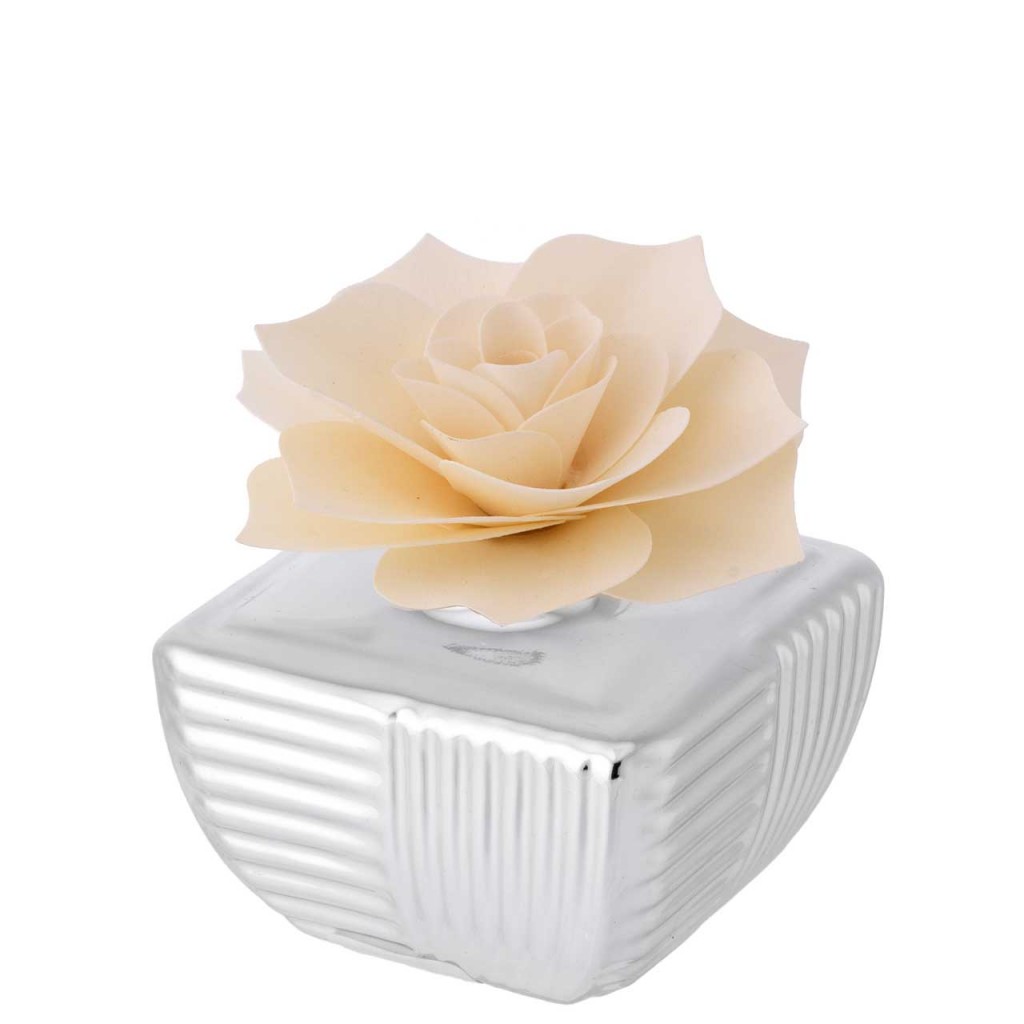 VASETTO 7,5x7,5 METALLIZZATO CON DIFFUSORE ROSA AVORIO