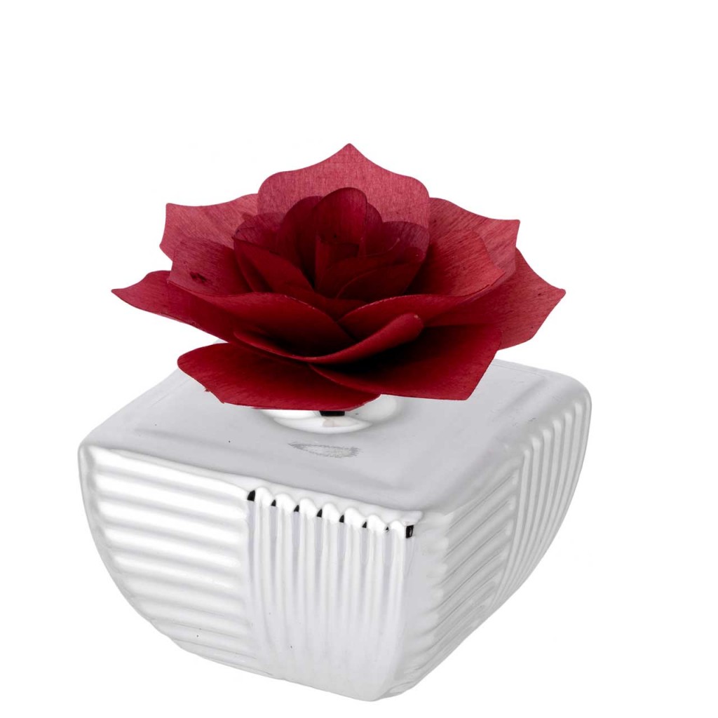 VASETTO 7,5x7,5 METALLIZZATO CON DIFFUSORE ROSA ROSSO BORDEAUX