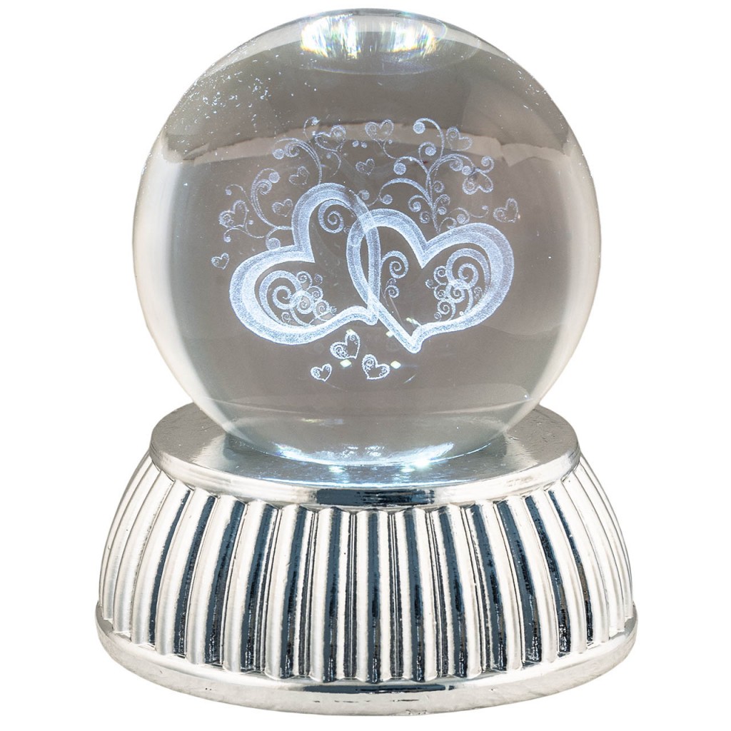 SFERA DIAM. 8 IN CRISTALLO SU BASE CON LED - CUORI STILIZZATI