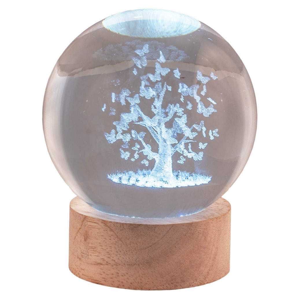 SFERA DIAM. 8 IN CRISTALLO SU BASE CON LED - ALBERO CON FARFALLE