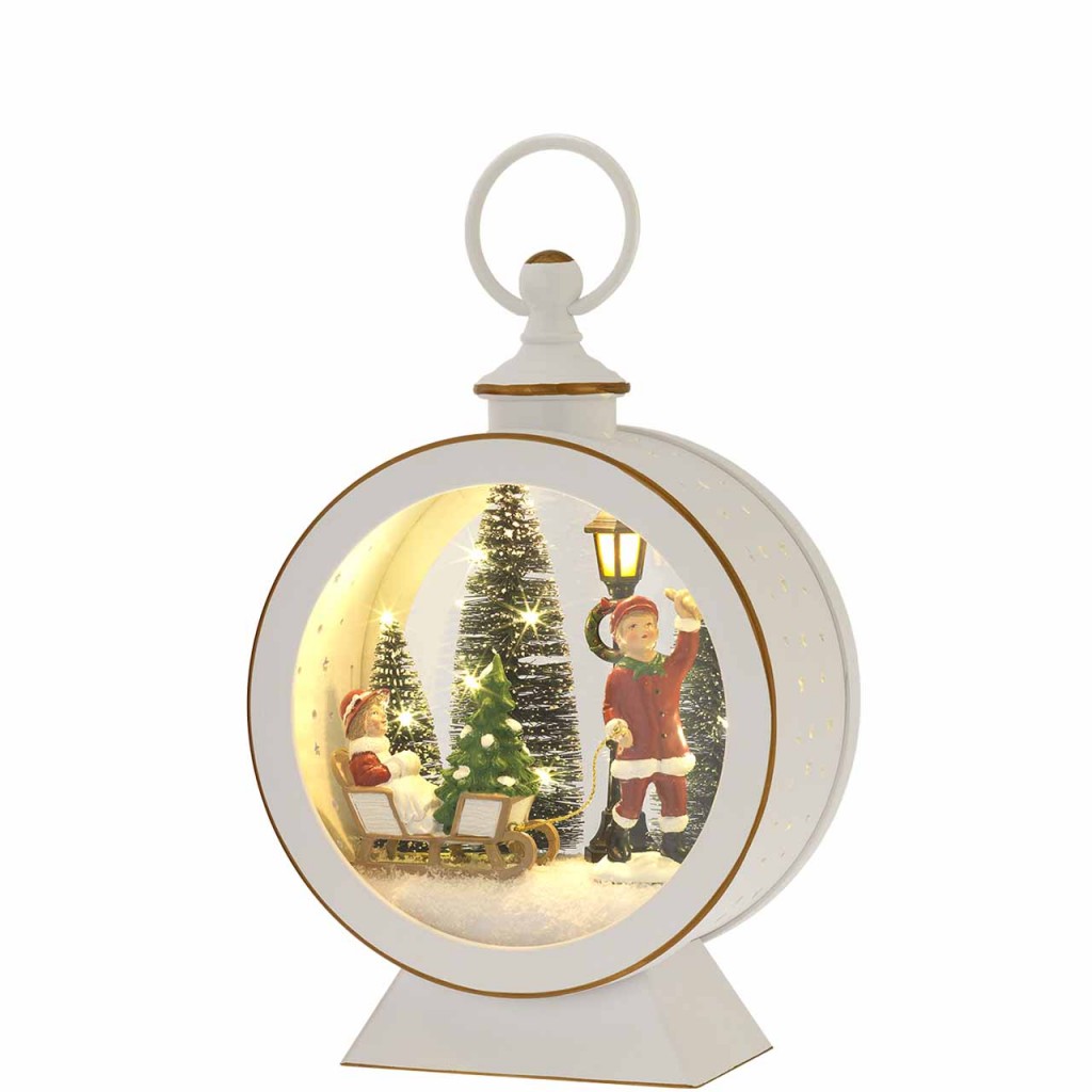 LANTERNA CERCHIO H. 25 BIANCA CON BAMBINI NATALE E LUCI